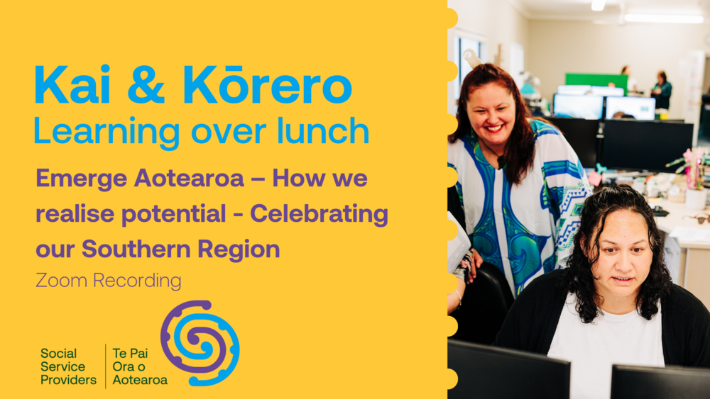 Our May Kai & Kōrero: Learning over lunch session celebrated the Emerge Aotearoa team from Canterbury & the West Coast. The Emerge Aotearoa team shared some outcome stories, how to access these services and told us a bit about their aspirations.