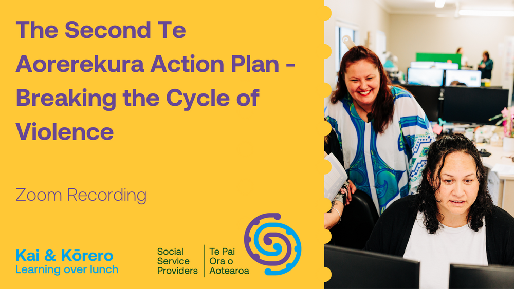 During our March Kai & Kōrero: Learning over lunch session we heard from Emma Powell, Chief Executive and Susana Lepoama, Manager Workforce Strategy from Te Puna Aonui. They provided an informative introduction to the new Te Aorerekura Action Plan (2025-2030) and answered a lot of our pātai. You can see the recording below, this will be useful to anyone with an interest in improving the family violence and sexual violence system. To keep informed you can subscribe to their newsletter by emailing contact@tepunaaonui.govt.nz.